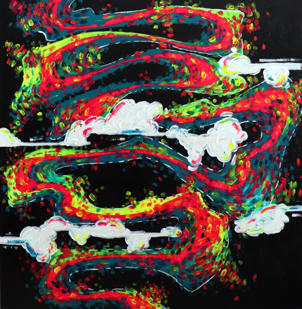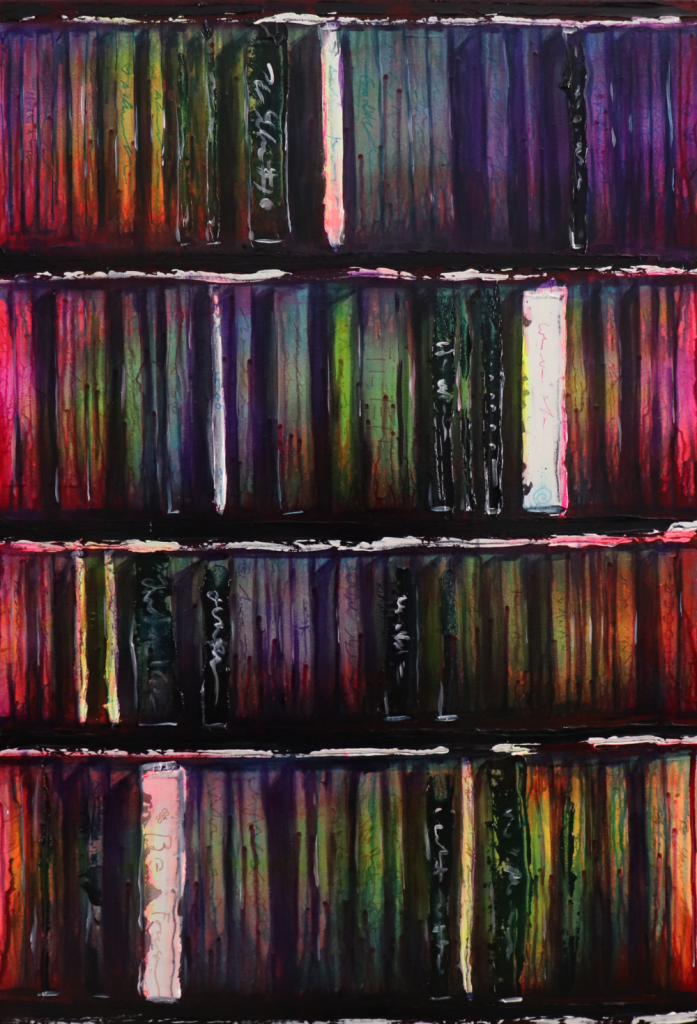 Each painting is born from a spark, a thought, an idea, or an experiment. They do not typically come to me fully formed but through a discourse with the painting as I shape it. I have never been able to see the end from the beginning. I have never been able to visualize things in my mind, only in words and thoughts.